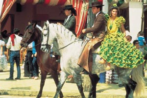 con los típicos trajes de FLAMENCA .
